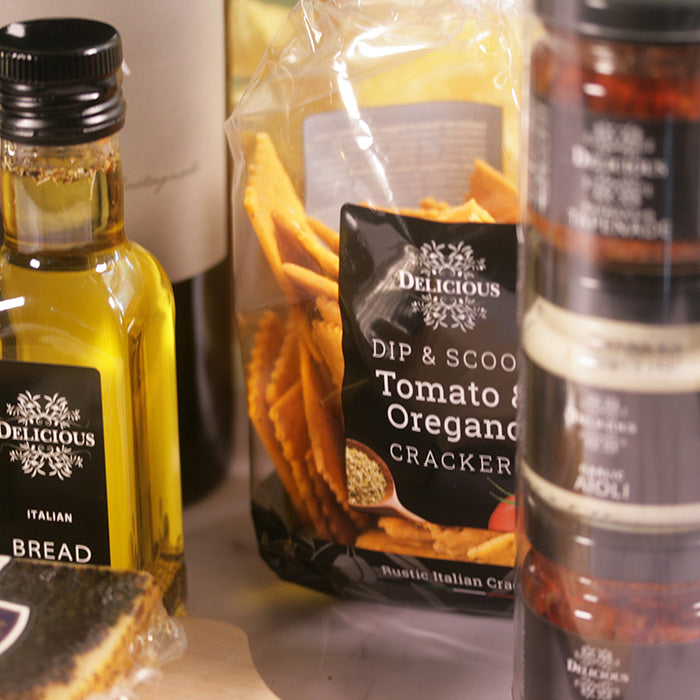 Ein großzügiges Geschenkset mit zwei erlesenen Weinen und einer vielfältigen Auswahl an Köstlichkeiten. Der Beaurempart Grande Réserve und der Scaia Corvina harmonieren perfekt miteinander. Dazu gibt es spanischen Schinken, Käse und verschiedene mediterrane Snacks: von Oliven und Pommes frites über Tapenaden und Dips bis hin zu knusprigem Toast. Eine komplette Box zum Teilen und Genießen.